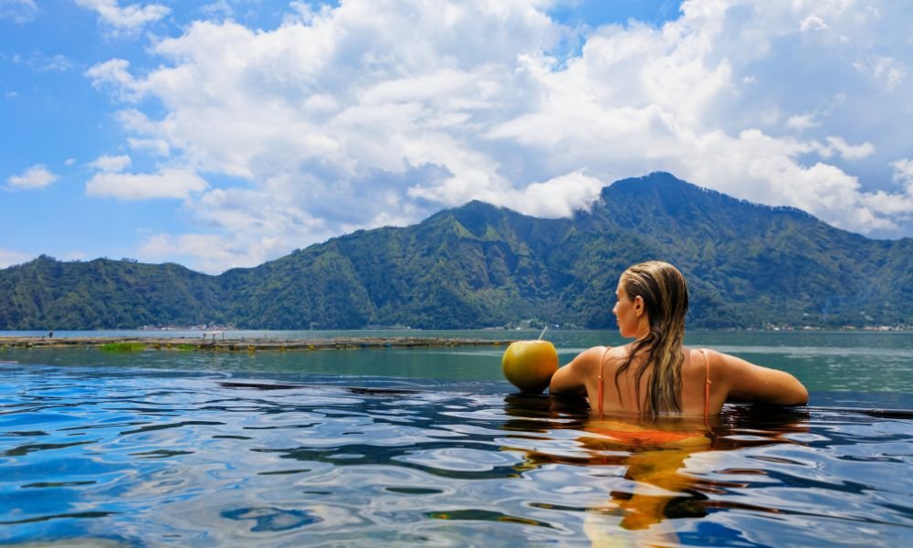 Begin your adventure with an early morning jeep tour or hiking trek to the summit of Mount Batur, one of Bali’s most active volcanoes. The jeep option provides a comfortable and exhilarating way to reach the top, while the hiking option offers an invigorating challenge with rewarding views. Upon arrival at the summit, you’ll witness a stunning sunrise, with panoramic views of Mount Agung, Mount Rinjani, and the surrounding landscape as the first rays of sunlight break the horizon. - Natural Hot Spring